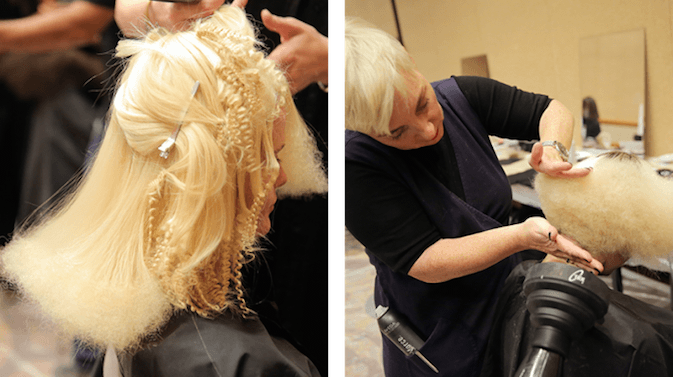 The intricate styles were created by taking small sections of hair, winding them through u-pins and then heat setting the pins with a flat iron. Once the hair was released, Antoinette gently brushed out strands and formed the shapes with heat and Control Force™ Firm Hold Hair Spray.
