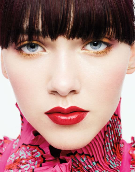 A classic red and gold palette creates a glamorous look that’s perfect for day or night.