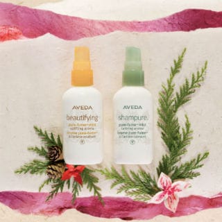 Pop by the salon for a shine treatment. Don’t have a ton of time to get your hair colored during holiday craziness? Our hair color shine treatments are perfect for anyone who’s short on time but still wants high shine and a quick color refresh. You can enliven your current color, try a glaze in a trendy shade or just get a gloss to really amplify your shine, and the best part? It takes just 20 minutes or less! The treatments are infused with plant oils that actually improve your hair’s condition, and the service can be added to your existing cut or color service too. Book one at your favorite Aveda salon and get glowing.
