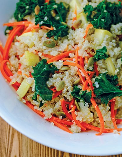 Kate knows from experience. A few years ago, she struggled with digestive issues, so she adopted an Ayurvedic diet, rich in quinoa. “Quinoa is used a lot in Ayurvedic cooking because it is packed with protein in addition to being gluten-free, so it’s filling without being hard to digest,” says Kate. It’s also ideal for summer “when your body doesn’t tend to crave richer proteins like meat and cheese,” she says.