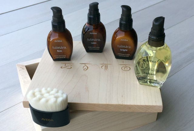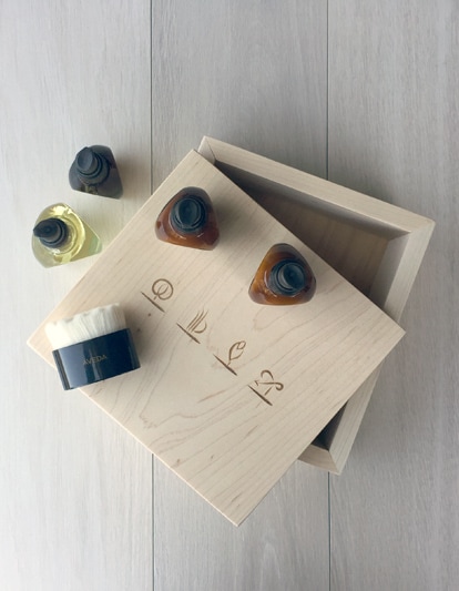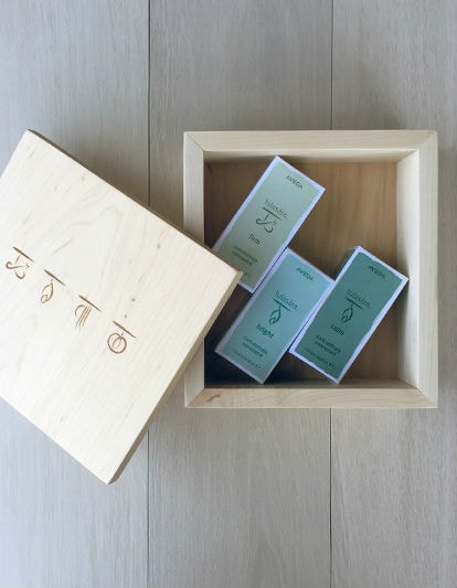 Several years later, once William’s newly formed woodworking business, Oh Dier, a home-décor, entertaining, and kids’ toys company made from ethically sourced wood, had taken off, he once again found himself with a connection to Aveda – a woodworking project with the company. The result? A bespoke, limited-edition wooden box that will be used to house the entire Tulasāra™ collection, including the Radiant Facial Dry Brush, Radiant Oleation Oil, Firm Concentrate, Bright Concentrate, and Calm Concentrate.